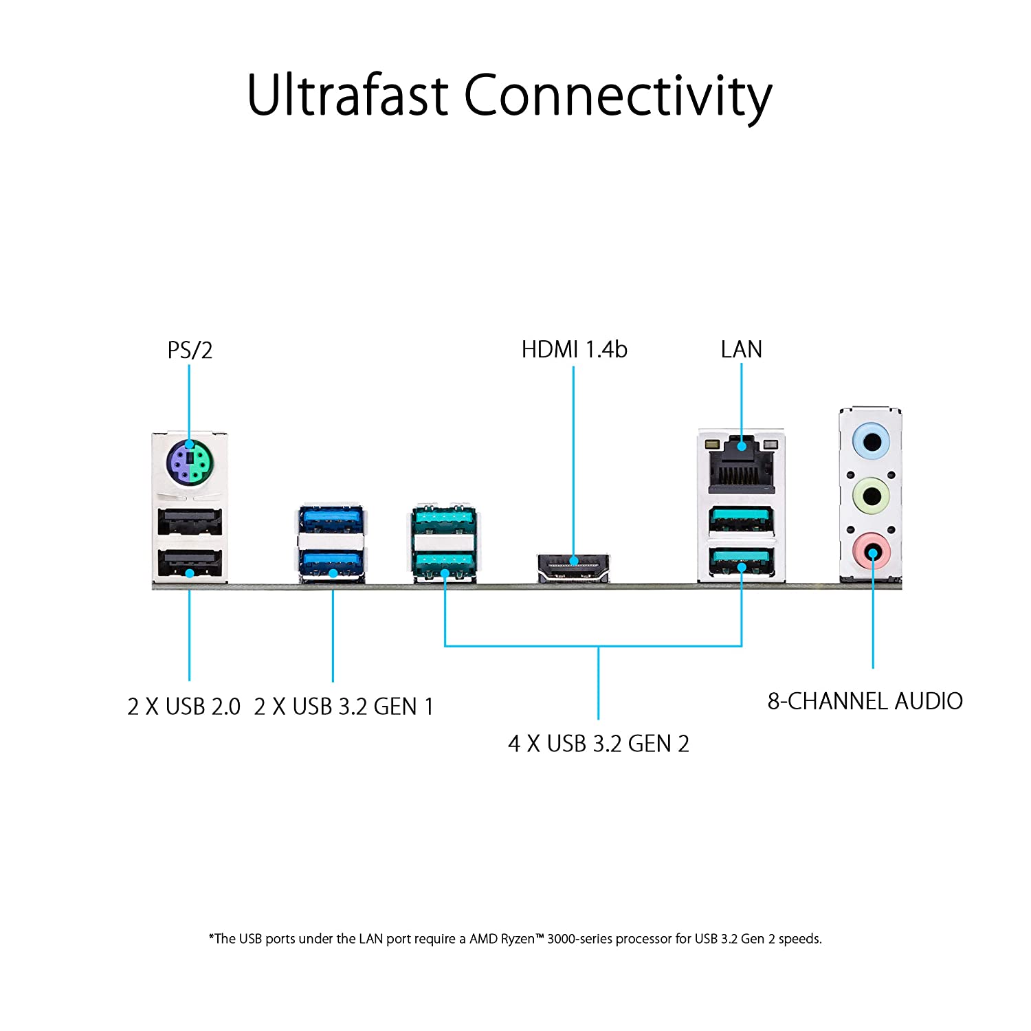 * The USB ports under the LAN port can run at USB 3.2 Gen 2 speeds with 3rd Gen AMD Ryzen™ Processors